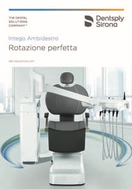 Intego Ambidestro è pensato per i dentisti mancini e destrorsi che chiedono ergonomia perfetta, senza dover abbassare gli standard del trattamento. Questo riunito permette al dentista di cambiare agevolmente posizione di trattamento. Il meccanismo di rotazione unico nel suo genere rende possibile convertire il riunito dalla posizione per destrorsi a quella per mancini in solo 15 secondi, rivelandosi così uno strumento estremamente flessibile, soprattutto negli studi associati.