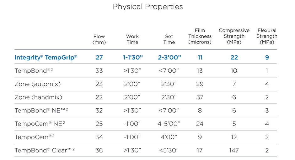 Il cemento per corone e ponti Integrity TempGrip utilizza una cementazione semplificata sia per il fissaggio di provvisori che per la loro rimozione durante la seconda visita per una pulizia più efficiente. Scegli un cemento provvisorio resistente per corone che riduca al minimo il rischio di sensibilità post-operatoria lasciando un’area pulita per il passaggio successivo.