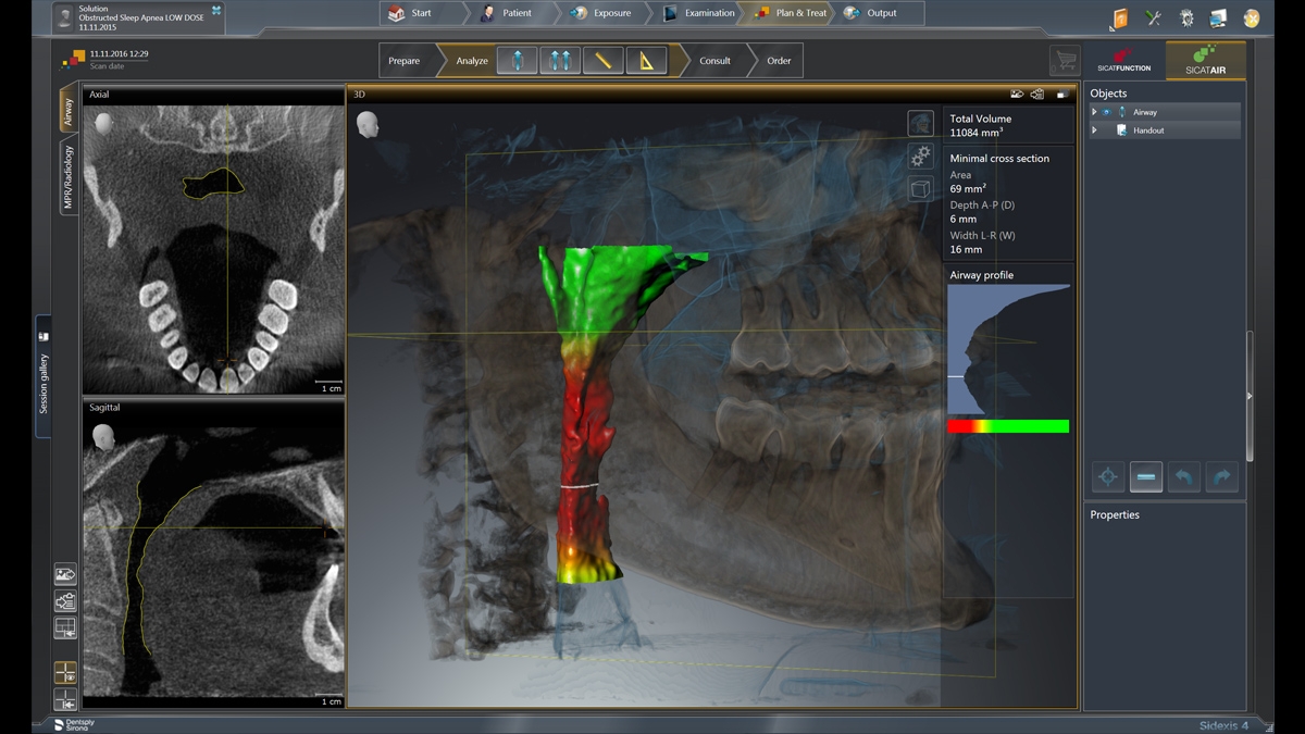 Indicazione: ostruzione delle vie aeree superiori / apnea notturna. Volume CBCT: Ø 11 x 10 cm a 20 µSv